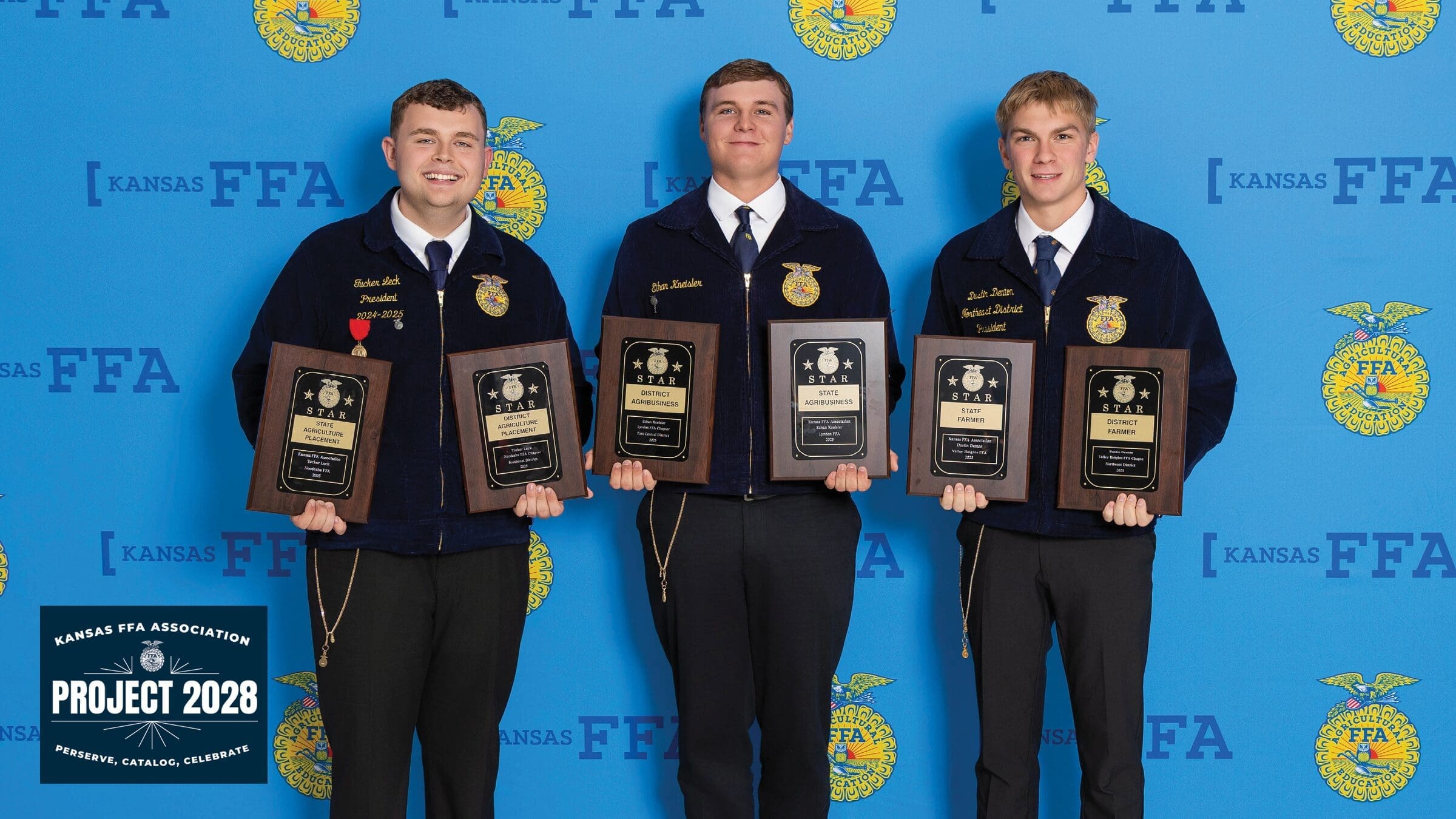 National FFA and Kansas FFA annually recognizes FFA members who rise to the top with the Star Awards. These members have gone above and beyond in their attitude, involvement, community service and supervised agricultural experience. Finalists for these awards have mastered skills in production, finance, and management.