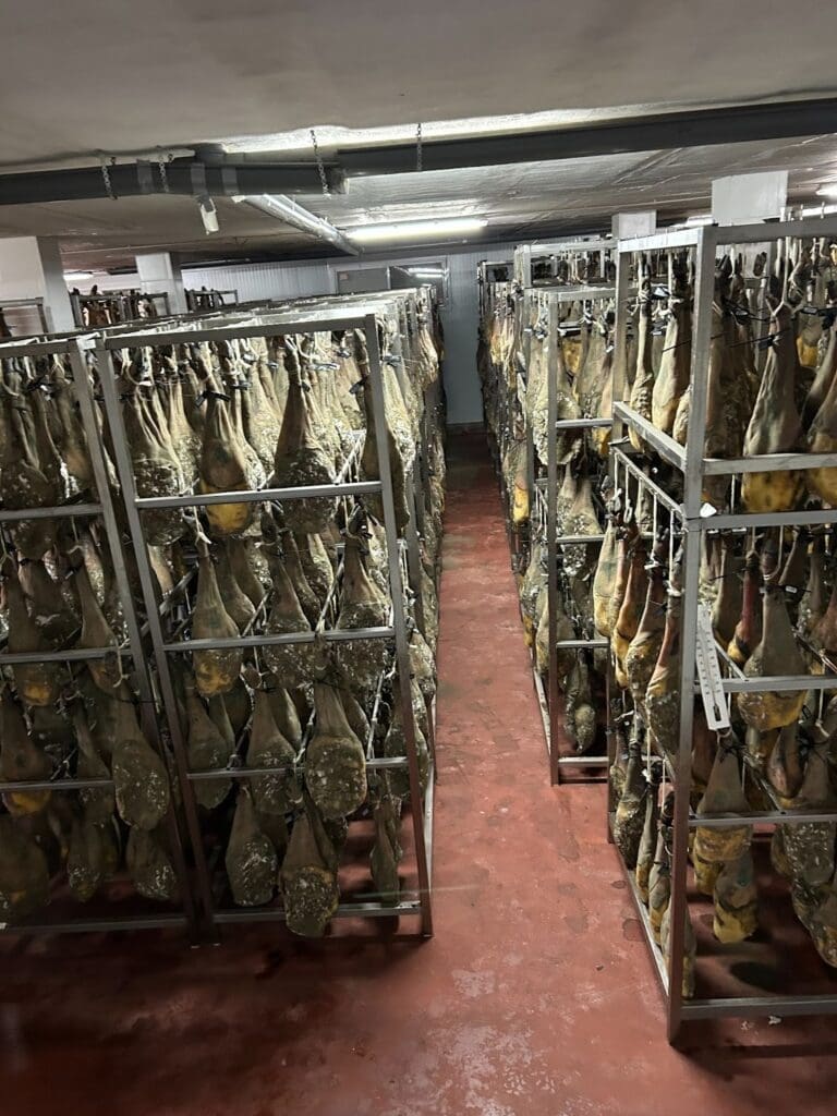 Walking the streets in Spain, almost everywhere you go, you find one piece of meat hanging in the butcher shop, local cafe, or restaurant. For many Spaniards, this is a rich tradition and heritage passed down for centuries, which is known all across the world. Iberian Ham. Just one piece of shoulder that you see hanging costs hundreds of dollars. What makes this meat the highest priced pork across the world? The name comes from the breed. These hogs are raised on acorns, which make the meat sweeter. Additionally, the acorns make the fat melt and liquify when it reaches room temperature. The hogs are harvested at two years old. Then, after being processed, the parts are separated, and the shoulders are set in a cooler filled with salt, and these shoulders are covered in salt for two weeks. Finally, they are moved to a hanging room for nearly 3 years. As the meat hangs, it grows mold on the outside. To control the amount of mold grown on the casing of the pork they paint sunflower oil on the outside of the meat to minimize the production of mold grown on the meat. During those 3 years, the shoulder loses half of its weight. Finally, after meticulous care and attention to this piece of ham for three years, it is finally ready to be sold and consumed, explaining the expensive price tag. It is enjoyed in paper-thin slices, either by itself or on a piece of bread with tomato and olive oil. Before you eat this specialty, you are instructed to place the meat on the top of your hand, then cover it with your other hand to melt the fat. Iberian ham is rich in flavor and tradition, a delicacy and a piece of meat that represents culture, legacy, heritage, and agriculture.