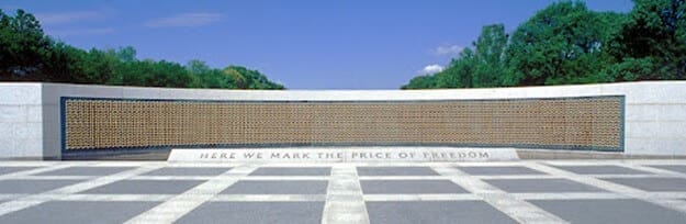 Another memorial that we got to see was the World War 2 memorial. This memorial consists of one pillar representing each of the states in the United States of American and the territories since all of them participated in the war. Another element of this memorial is a wall of 4,048 stars, and each star represented 100 American service men that died in the war. Yet another example of the massive number of hero’s who gave the ultimate sacrifice to maintain this countries freedom and liberate other countries from the independence of tyrannical rule.