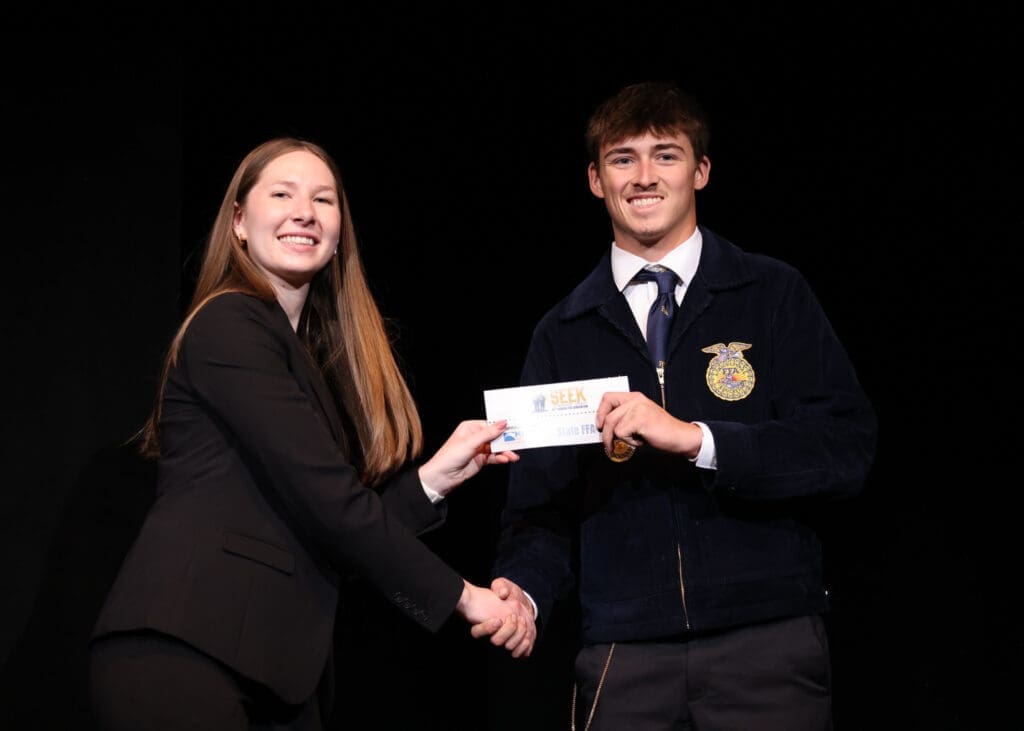 The State FFA Degree is the highest degree that the State FFA Association can bestow on a member. This degree is award annually at the State FFA Convention to those members who have met the minimum qualifications set forth by the Kansas FFA Association and National FFA Organization. The golden charm of the State FFA Degree is the symbol of growth and development in the members chosen occupation.
